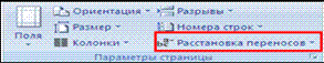 Задать (убрать) автоматический перенос слов: на ленте главного меню команда Разметка страницы – кнопка Расстановка переносов – Авто.